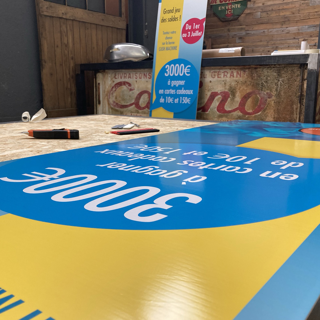 Les lettres adhésives et logos adhésifs sont découpés avec des films teintés masse selon un nuancier de couleurs.